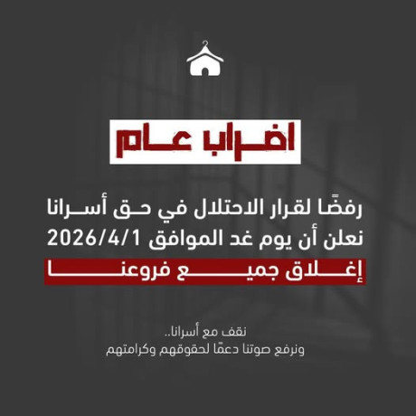 تضامناً مع أسرانا البواسل نعلن اضرابنا ليوم غد