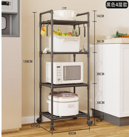 ☘️✨رف مطبخ متعدد الاستخدام متكون من 4 طبقات--الحل الذكي لتنظيم مطبخك وتوفير المساحة بأناقة 👌--- المواصفات:--مكون من الطبقات : 4 طبقات--مصنوع من معدن متين مقاوم للصدأ 💪--متوفر لون أسود عصري مميز🖤--📊الأبعاد:--الارتفاع: 138 سم-العرض: 42 سم-العمق: 32 سم--💯 المميزات:--🔹 تصميم عملي يوفر مساحة تخزين إضافية-🔹 مثالي لوضع الميكروويف، قدور الطبخ، جهاز الأرز، الفواكه وغيرها-🔹 مزود بعلاقات جانبية لتعليق الأدوات 🥄-🔹 عجلات متحركة لسهولة النقل والتنظيف 🚗-🔹 هيكل قوي وثابت للاستخدام اليومي-🔹 مناسب للمطابخ الصغيرة وتنظيم الزوايا--🏡 الاستخدام:--✔️ ترتيب أدوات المطبخ-✔️ تخزين الأجهزة الكهربائية-✔️ تنظيم الفواكه والخضار-✔️ مناسب للمطبخ أو غرفة التخزين--- اختيارك المثالي لمطبخ مرتب، عملي وأنيق!--..............................................................-📍للطلب والاستفسار عبر الرسائل الصفحة-خدمة التوصيل منتوفر إلى جميع المناطق 🚚