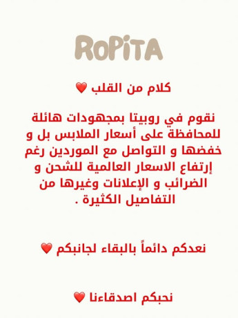 -نقوم في روبيتا بمجهودات هائلة للمحافظة على أسعار الملابس بل و خفضها و التواصل مع الموردين رغم إرتفاع الاسعار العالمية للشحن و الضرائب و غيرها من التفاصيل الكثيرة.