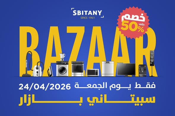 - رجعنالم بعرض سبيتاني بازار! -بفروع سبيتاني -خصومات لغاية 50% على تشكيلة واسعة-🎁 هدية بـ1 شيكل عند الشراء بـ2000 شيكل وأكثر-👰🤵 للعرسان: خصومات وهدايا إضافية-جهّز بيتك ووفر أكثر!-📅 الجمعة 24/04/2026-📍 فروع مختارة:-رام الله - الإرسال | البيرة - شارع نابلس | أريحا | نابلس - رفيديا | حوارة-القدس - صلاح الدين | بلدي مول | عطروت | الرام | كفر عقب | العيزرية | بيت لحم-⏰ بعد صلاة الجمعة-بلدي مول وعطروت: 10:00 صباحاً-🚨 يوم واحد فقط! وعبر الموقع الإلكتروني https://bit.ly/SbitanyBazaarfri