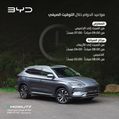 زبائننا الكرام،-نود اعلامكم ببدء العمل بالتوقيت الصيفي في المعارض ومراكز الصيانة اعتباراً من غداً السبت 28 آذار، على أن يتم تقديم عقارب الساعة 60 دقيقة.--تواصلوا معنا للمزيد من التفاصيل على الرقم: 7000#-او زوروا معارضنا:-📍 الخليل - مقابل بئر حرم الرامة.-📍رام الله - البيرة - البالوع - دالاس سنتر.-📍نابلس - شارع صرة.-شركة eMobility الوكيل الحصري لسيارات BYD في فلسطين-Build Your Dreams-#BYD #BuildYourDreams #BYDEJOURNEY