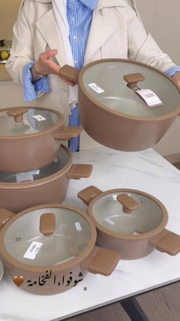 مطبخك يستاهل طقم يلمع فيه 👩‍🍳✨-طناجر ومقالي بتصميم أنيق ولون فخم-عملية، مرتبة، وكل قطعة بتسهل الطبخ أكثر 🍳-اختيارك الصح لمطبخ أجمل كل يوم🤎🤎🤎