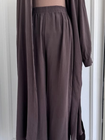 طقم قميص طويل مع بنطلون خصر مغيّط ✨-سوبر مريح وعملي 👌--قطع أخيرة --سايزات 1/2 بلبس من 36 لـ 42--الألوان: بني 🤎 عنابي 🤍 أسود 🖤--لحقي حالك قبل ما يخلص