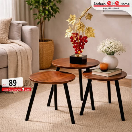 طقم 3 طاولات وجه خشب