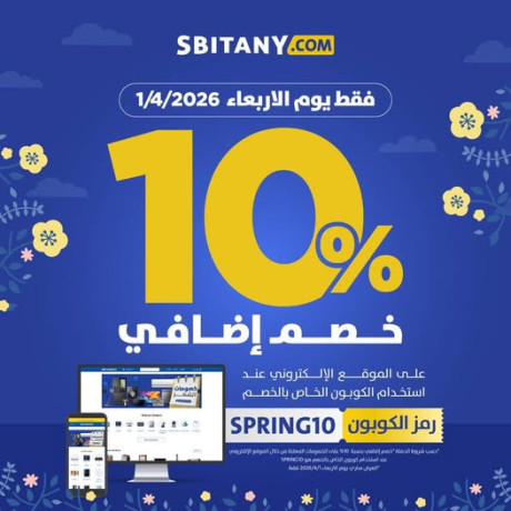 🌼 عرض الربيع حصريا على Sbitany.com--🎯 خصم 10% إضافي على العروض الشهرية-📅 الاربعاء 1/4 فقط، الفرصة محدودة ليوم واحد ⏳-🌐 حصريًا عبر الموقع الإلكتروني، تسوّق الآن ولا تضيع الخصومات--⚡استخدم كود الخصم: SPRING10-👌واستفد من التوفير الإضافي على منتجات مختارة--🌐 تسوّق الآن عبر الموقع:-🔗https://bit.ly/SBTSpring26