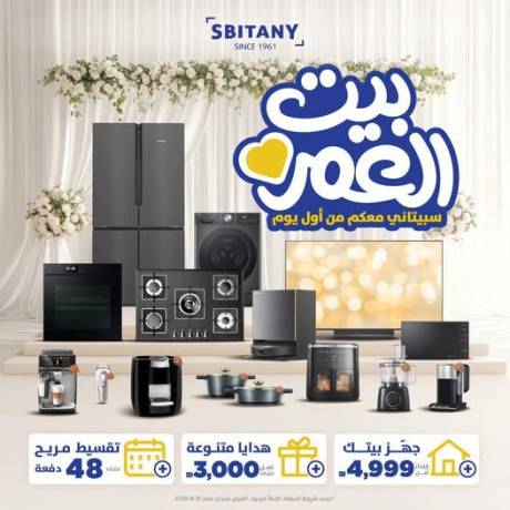 بيت العمر بيبدأ من أول اختيار صح 🤍-ومع عرض العرسان من سبيتاني، جهّزوا بيتكم ابتداءً من 4,999 ₪ واستفيدوا من مزايا بتخلّي البداية أسهل وأوفر:--🎁 هدايا متنوعة حتى 3,000 ₪ على فئات مختارة من الأجهزة المنزلية الصغيرة والعناية الشخصية والتلفزيونات-📅 تقسيط مريح حتى 48 دفعة--سبيتاني معكم من أول يوم، لتكون بداية بيتكم أجمل وأسهل.-العرض ساري حتى 31/8، حسب الشروط. -العرض متوفر لدى كافة فروعنا أو موقعنا الإلكتروني