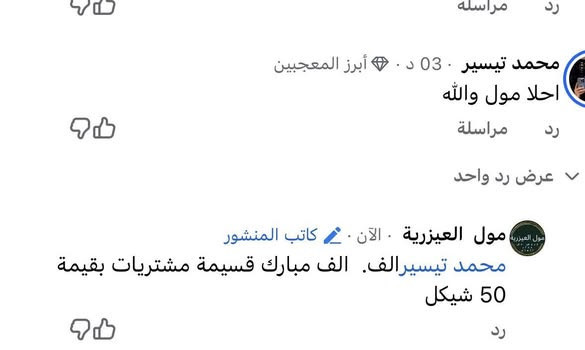 الف الف مبارك قسيمة مشتريات بقيمة 50 شيكل من مول العيزرية