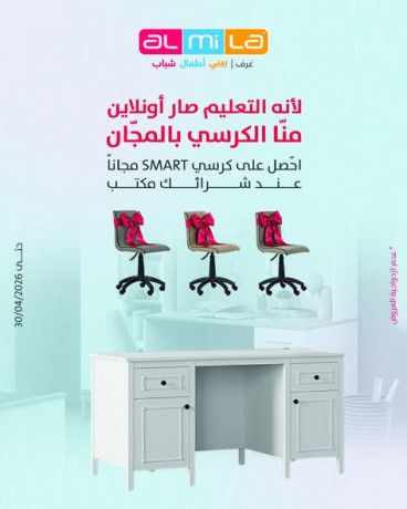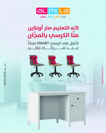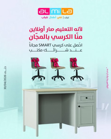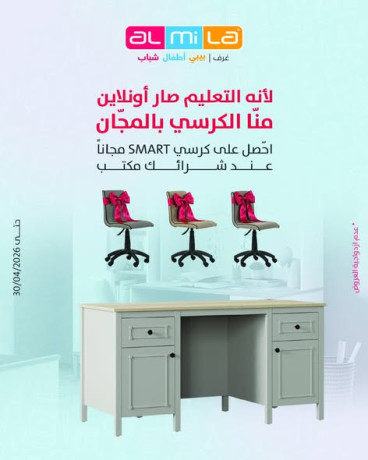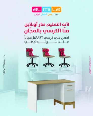 لأنه التعليم صار اونلاين📚 -منّا الكرسي بالمجان 💺🪑-احّصل على كرسي SMART مجاناً عند شرائك مكتب‼-🔴 عدم ازدواجية العروض- حتى 30/4/2026-——————-(١) #رام_الله - البيرة - شارع القدس الرئيسي 022405155 ( سندس للاطفال 3)-(٢) #البيره - شارع نابلس (سندس للاطفال 1)-(٣) #البيرة - بلازا مول (سندس للاطفال 2 )-(٤) #بيت_لحم - بيت جالا - شارع السهل - خلف المهد للصرافة 022776852-(٥) #نابلس - بيت ايبا الشارع الرئيسي - مقابل شركة العنبتاوي للاثاث - 022405155-(٦) #الخليل - حلحول - الشارع الرئيسي - بجانب مركز الشرطة - 022405155-(٧) داخل_الخط_الأخضر: طمرة المدخل الرئيسي بالقرب من مول طمرة - 046157111-(٨) داخل_الخط_الأخضر: باقة الغربية - 046151154-أو من خلال موقعنا الالكتروني www.almila.ps