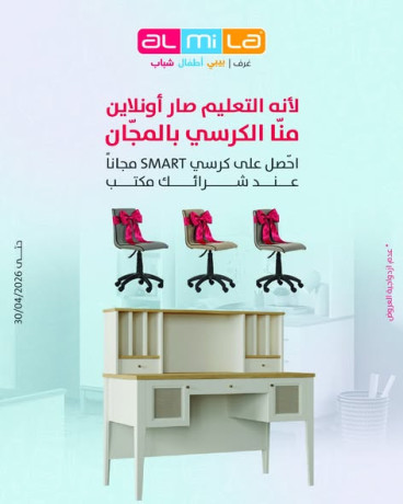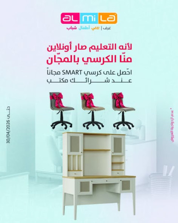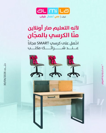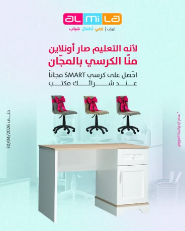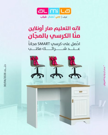 لأنه التعليم صار اونلاين📚 -منّا الكرسي بالمجان 💺🪑-احّصل على كرسي SMART مجاناً عند شرائك مكتب‼-🔴 عدم ازدواجية العروض- حتى 30/4/2026-——————-(١) #رام_الله - البيرة - شارع القدس الرئيسي 022405155 ( سندس للاطفال 3)-(٢) #البيره - شارع نابلس (سندس للاطفال 1)-(٣) #البيرة - بلازا مول (سندس للاطفال 2 )-(٤) #بيت_لحم - بيت جالا - شارع السهل - خلف المهد للصرافة 022776852-(٥) #نابلس - بيت ايبا الشارع الرئيسي - مقابل شركة العنبتاوي للاثاث - 022405155-(٦) #الخليل - حلحول - الشارع الرئيسي - بجانب مركز الشرطة - 022405155-(٧) داخل_الخط_الأخضر: طمرة المدخل الرئيسي بالقرب من مول طمرة - 046157111-(٨) داخل_الخط_الأخضر: باقة الغربية - 046151154-أو من خلال موقعنا الالكتروني www.almila.ps