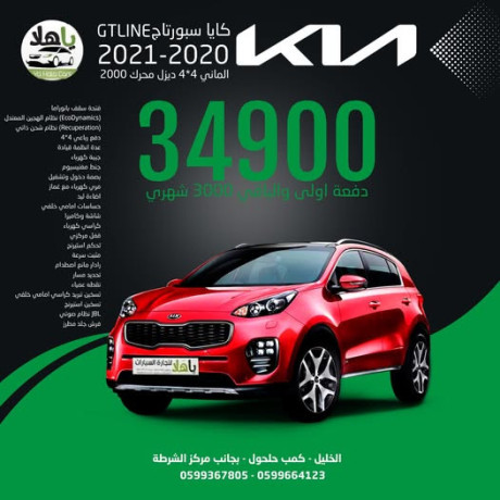 كيا سبورتاج GT LINE موديل (2020-2021) -الدفعة الأولى: 34,900 شيكل فقط.-القسط الشهري: 3,000 شيكل (شيكات شخصية).--✨ أبرز المواصفات التي تجعلها خيارك الأول:-⚙️ المحرك: ديزل 2000 قوي واقتصادي (4x4).-☀️ الرفاهية: فتحة سقف بانوراما، كراسي جلد مطرزة (كهرباء + تسخين وتبريد).-🛡️ الأمان : رادار مانع اصطدام، تحديد مسار، ونقطة عمياء.-🎵 النظام الصوتي: JBL الأصلي مع شاشة وكاميرا وحساسات شاملة.-💎 الإضافات: بصمة، جنط مغنيسيوم، إضاءة LED، ونظام شحن ذاتي.--📍 العنوان: الخليل - كمب حلحول - بجانب مركز الشرطة.-📞 للتواصل والاستفسار: 0599367805 | 0599664123