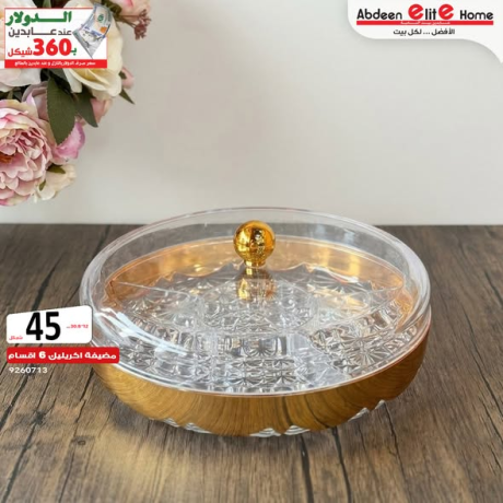 مضايف اكريليك 6 اقسام بحز ذهبي زادهم فخامة -💡 الاسعار موضحة على الصور -💡خصم 18% على كافة الاصناف بالمنشور-#الدولار_ارتفع_عند_عابدين_صار 3.60-الــمـــعـــــادلة بــسـيطة خصم 18% على جميع الاصناف -خصم اضافي 8% على اصناف العروض-العرض من 16/4 حتى 24/04/2026-العروض لمشتريات فوق 100 شيكل -عابدين #الأفضل_لكل_بيت -📍الفرع الرئيسي رام الله شارع يافا -او احد فروعنا كفرعقب / لاكاسا مول / القدس / الايكون مول-لطلب المنتج و التوصيل 022967674- eliteonline.ps الموقع الالكتروني -عابدين اليت هوم اكبر مركز و شبكة تسوق ادوات منزليه في فلسطين-CODE: