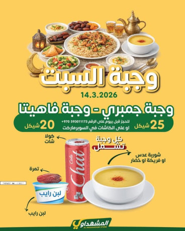 وجبة رمضان ليوم السبت 14.3.2026 من مطبخ بيت الكل-احجزها قبل بيوم على رقم 0593011173