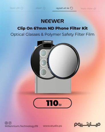 ارفع مستوى تصويرك بالموبايل من أي مكان 📱🎬--مع عدسة فلتر ND قياس 67mm وحامل متوافق مع معظم الهواتف الذكية-من شركة Neewer--✔ تثبيت قوي وآمن-✔ تصوير احترافي مثالي لصناع المحتوى-✔ حماية من العوامل الخارجية--خلي كل لقطة من موبايلك تحكي قصة ✨-67mm ND Phone Filter Kit: 110 Shekel 💰-Upgraded 67mm Phone Filter Moun: 50 Shekel 💰--📞 للاستفسار والتواصل:-📱 0599 202 402-☎️ 092333742-📍 نابلس - شارع سفيان-مجمع سفيان التجاري - الطابق الثالث-www.studio.ps 🌐- 🚚 توصيل متاح لجميع مناطق الضفة