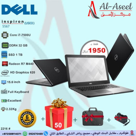 - - عرض خرافي من مركز الأسيل ----💻 جهاز قوي جداً بمواصفات نارية… مناسب لكل شي!--✨ Dell Inspiron 5567 - قوة أداء + مساحة ضخمة--🔹 المعالج: Core i7-7500U --🔹 الرام: 32GB DDR4 🚀 (قوة خارقة للتعدد المهام)-🔹 التخزين: SSD 1TB ⚡ (سرعة + مساحة كبيرة جداً)-🔹 كرت شاشة: Radeon R7 M440 🎮 + Intel HD 620-🔹 شاشة: 15.6 إنش-🔹 كيبورد كامل (Full Keyboard)-🔹 حالة الجهاز: ممتاز (Excellent)--⚡ مناسب لـ:-الشغل الثقيل 💼 | التصميم 🎨 | البرامج الهندسية 🧠 | التعدد المهام ---🎁 هدايا قوية مع الجهاز-✔️ شنطة لابتوب-✔️ شاحن-✔️ هدية بقيمة 50 شيكل 🎁--🛡️ كفالة 6 شهور--💰 السعر: 1950 شيكل فقط! 😱