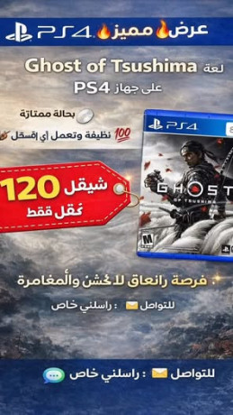 🎮- عرض مميز -🎮--لعبة Ghost of Tsushima -على جهاز PS4 --📀 بحالة ممتازة -💯 نظيفة وتعمل بدون أي مشاكل --💰 السعر: 120 شيقل فقط --✨ فرصة رائعة لعشاق الأكشن والمغامرة --📩 للتواصل: راسلني خاص --#PS4 -#GhostOfTsushima -#عروض_ألعاب