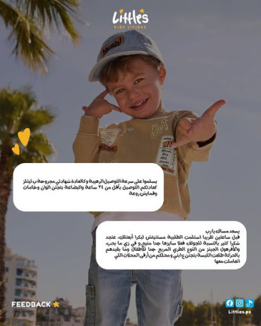 كل يوم نسعى نقدّم الأفضل لأطفالكم 🤍-وبتعليقاتكم الحلوة منعرف إننا ماشيين بالطريق الصح ✨--كيف كانت تجربتكم مع ليتلز؟-شاركونا آراءكم بالتعليقات 😍--.-.-📍 زورونا في رام الله - شارع ركب-🚚 التوصيل متاح لكل مناطق الضفة الغربية، القدس، والداخل-📞 للتواصل المباشر: 02/2953929-📱 واتساب: 970566771361+