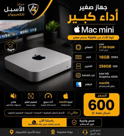 - Mac mini i7 بسعر مميز ---🍎 جهاز Apple أصلي - تصميم صغير وأداء قوي--✔️ معالج i7-✔️ رام 16GB أداء سريع-✔️ SSD 256GB إقلاع وتشغيل سريع-✔️ مناسب للشغل، الدراسة، والبرمجة-✔️ خيار ممتاز لعشاق نظام macOS--🚀 جهاز عملي، هادي، وما بياخد مساحة--💰 السعر: 600 شيكل فقط--📩 راسلنا الآن واحجز جهازك قبل نفاد الكمية
