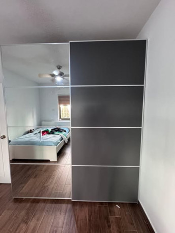 -A cozy modern apartment with a bedroom and ample storage space.