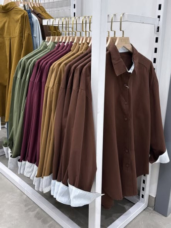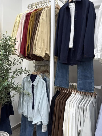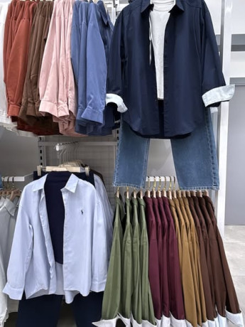 -A display of various shirts in different colors.