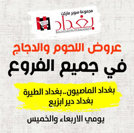 #يومين_من_العروض_الطازجة اكبر جودة #وتوفير #في جميع فروع #بغداد-جودة وتوفير! 🛒✨-🛒✨ يبدأ العرض الاربعاء 15\4\2026 حتى مساء الخميس 16\4\2026-جودة ثم سعر👌-ملاحظة هامة اصناف بغداد ذات جودة عالية-#الماصيون - شارع وزارة العدل-#الطيرة - شارع الكرمل - خلف سرية رام الله-#عين#منحد ـ بجانب تكسي الرافدين سابقا-#دير#ابزيع - الشارع الرئيسي