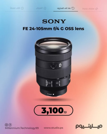 ابداع بلا حدود مع عدسة Sony FE 24-105mm f/4 G OSS ✨📸--✔ نطاق زووم واسع يغطي جميع احتياجاتك من تصوير المناظر الطبيعية إلى البورتريه-✔ تثبيت بصري يقلل الاهتزاز ويعطيك صور أوضح-✔ تركيز سريع وهادئ مثالي للصور والفيديو-✔ فتحة ثابتة f/4 لضمان إضاءة متوازنة طوال نطاق الزووم--السعر: 3,100 شيكل--📞 للاستفسار والتواصل:-📱 0599 202 402-☎️ 092333742-📍 نابلس - شارع سفيان-مجمع سفيان التجاري - الطابق الثالث-www.studio.ps 🌐- 🚚 توصيل متاح لجميع مناطق الضفة