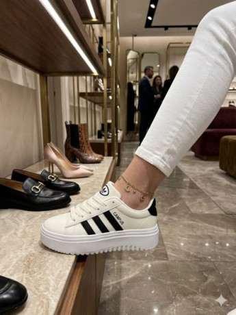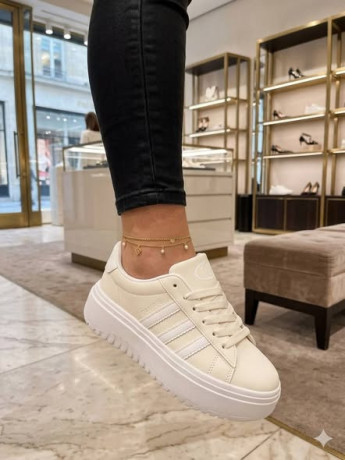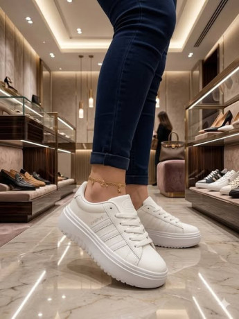 -Trendy white sneakers with a thick sole, perfect for casual wear.