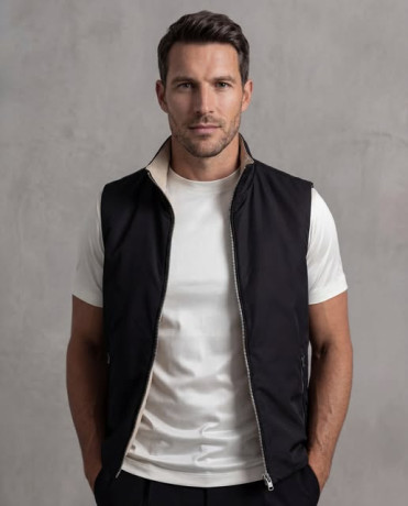 A quiet balance of structure and lightness, designed for movement and daily wear.--The Tech Gilet is built to provide warmth, mobility, and versatility — integrating seamlessly into a modern, considered wardrobe.--#MaenDonati