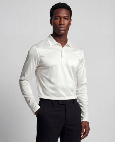 The Imperial Long Sleeve Polo is designed with a focus on structure and clarity.--Crafted from dense mercerized cotton, it offers a smooth surface with a subtle sheen, known for its durability and refined appearance . The silhouette remains composed, maintaining its shape while allowing natural movement.--A considered essential for a wardrobe built on permanence.--#MaenDonati